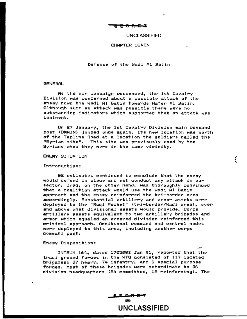 Subject = CHAPTER SEVEN DEFENSE OF THE WADI AL BATIN