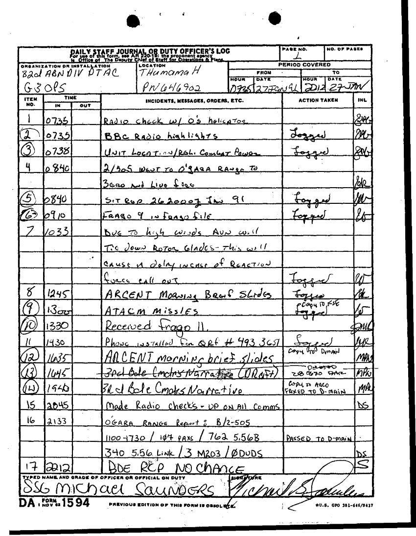 Folder Title = DUTY LOG G3 TAC 27-28 JAN 91