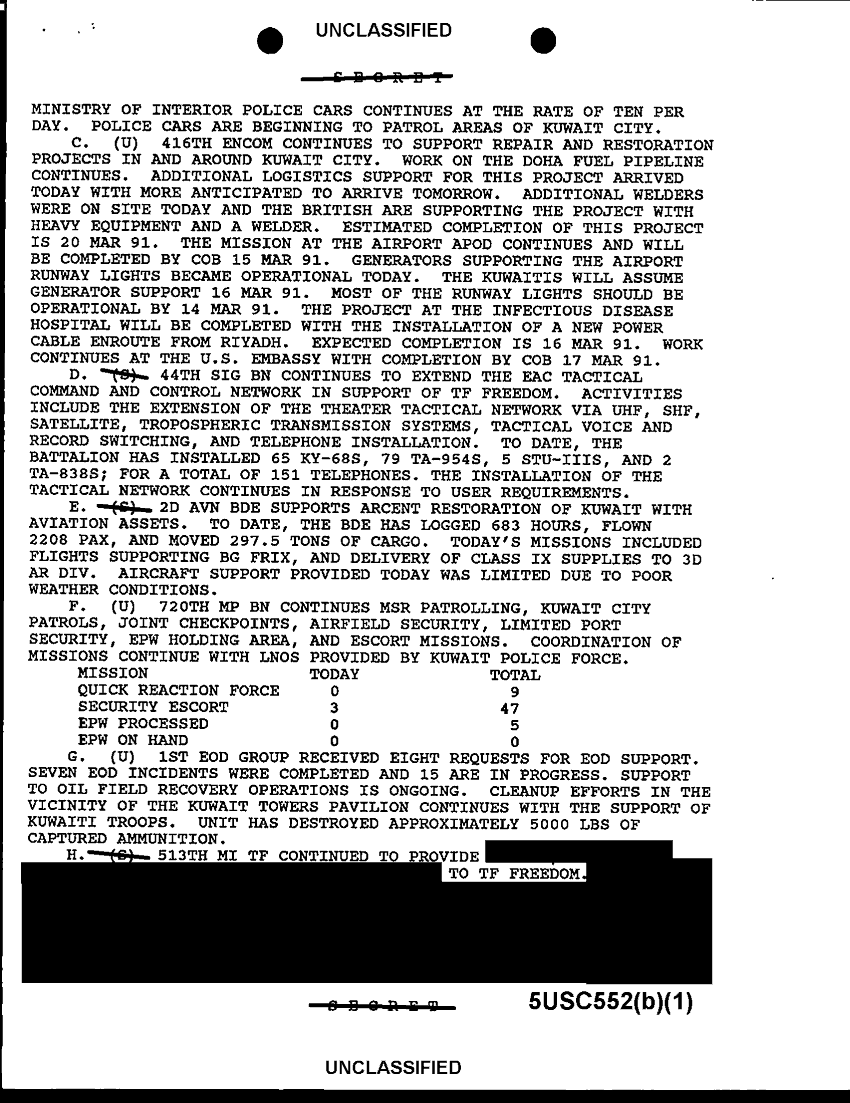 Document 6 f:/Week-33/BX000494/COMMMAND REPORTS RPTS TASK FORCE FREEDOM 1 OF 2 -1/sitrep tf freedom 13 mar 91:11089615151144