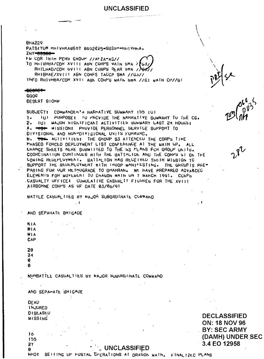 Document 2 f:/Week-08/BX000015/DUTY LOG 18 PER GP SITREPS G3 MAR 91/comander's narrative summary:11229616373433