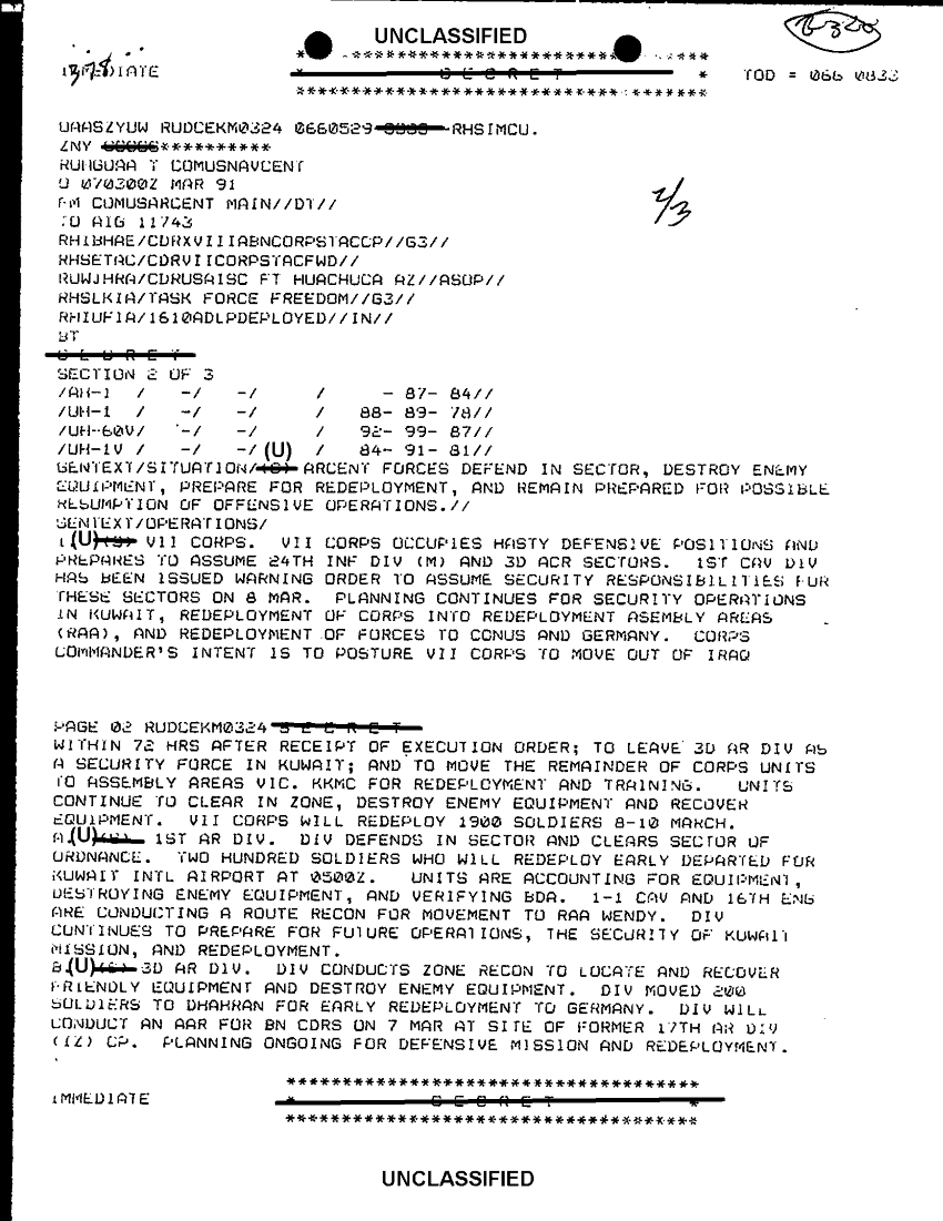 Document 7 f:/Week-29/BX000421/TACTICAL OPERATIONS CENTER LOGS - LUCKY TAC JOURNALS 8-14 MAR 91/sitrep usarcent 7 mar 91:11089615144531