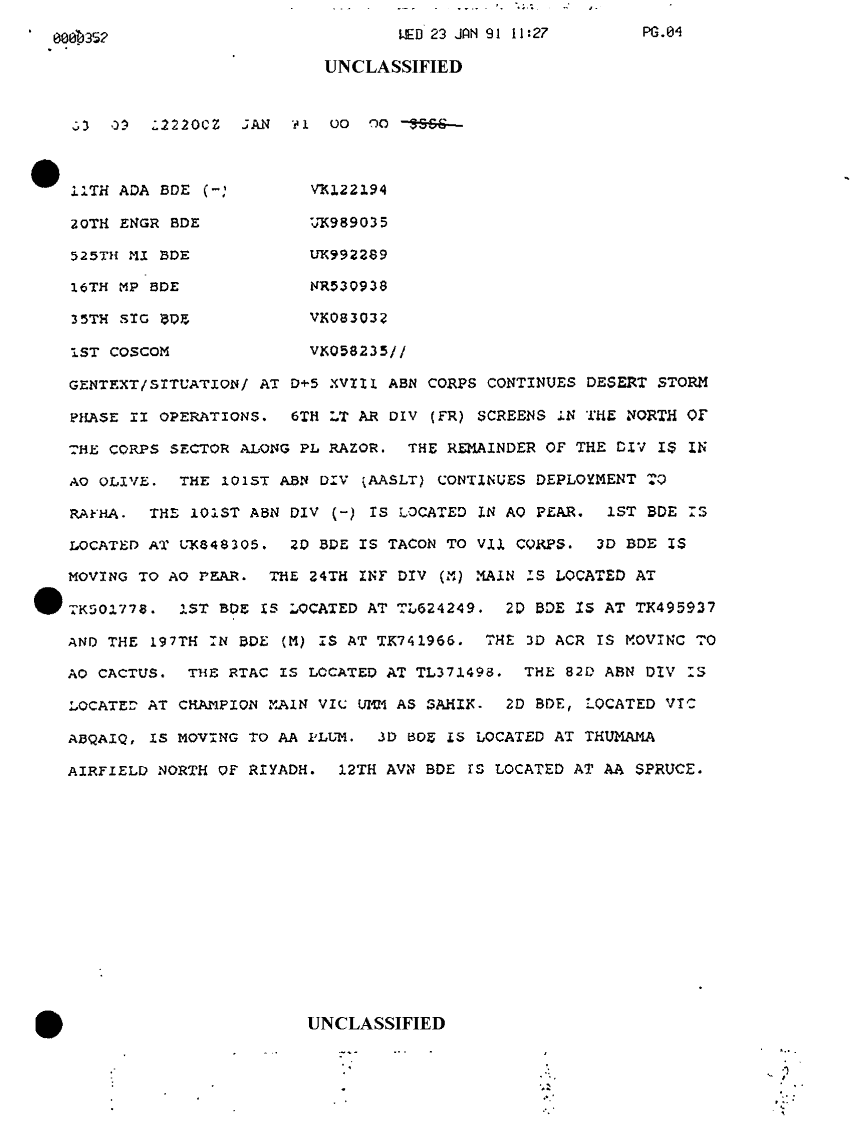 Document 9 f:/Week-30/BX000441/COMMAND REPORTS SITREPS XVIII ABC JAN- FEB 91/sitrep xviii abn corps 23 jan 91:11089615145938