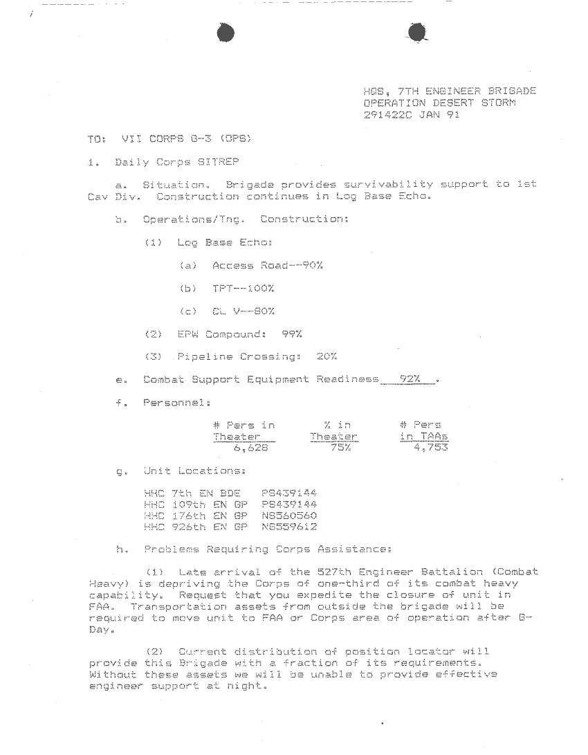 Document 41 f:/Week-24/BX000213/SITUATION REPORTS 7TH ENG BDE 22 DEC 90- 10 APR 91/daily sitrep 7th engineer bde:11089615143325