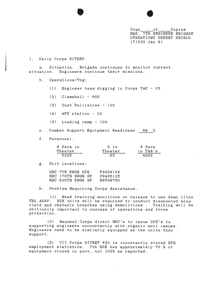 Folder Title = SITUATION REPORTS 7TH ENG BDE 22 DEC 90- 10 APR 91