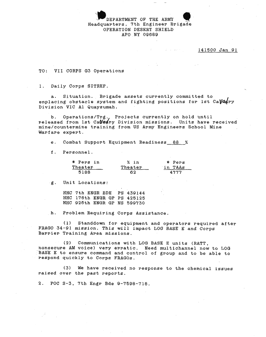 Folder Title = SITUATION REPORTS 7TH ENG BDE 22 DEC 90- 10 APR 91