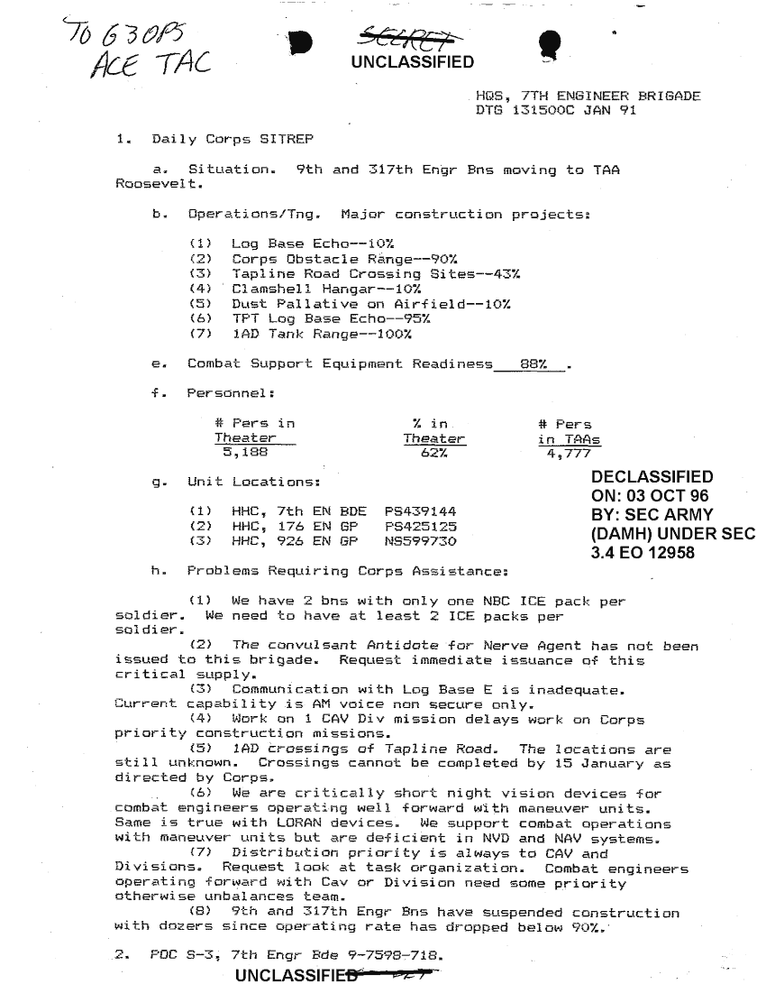 Folder Title = SITUATION REPORTS 7TH ENG BDE 22 DEC 90- 10 APR 91