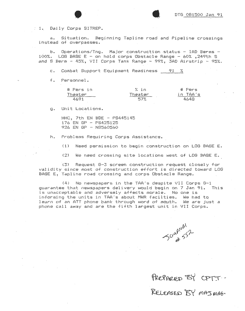 Folder Title = SITUATION REPORTS 7TH ENG BDE 22 DEC 90- 10 APR 91