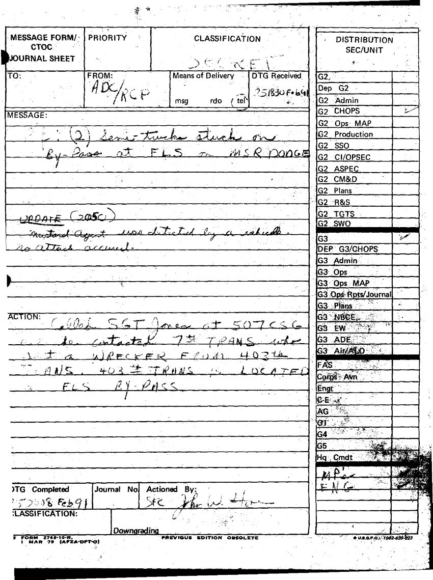 Subject = CTOC JOURNAL SHEET 25 FEB 91