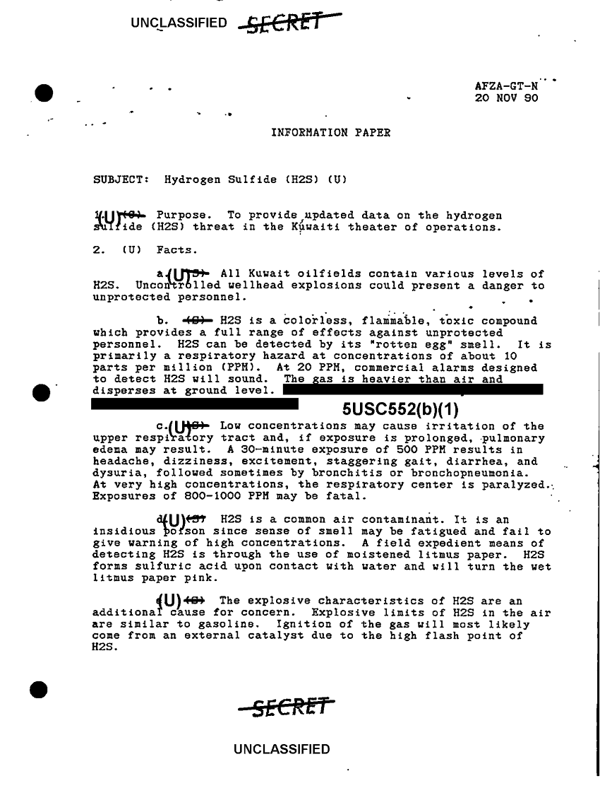 Subject = HYDROGEN SULFIDE