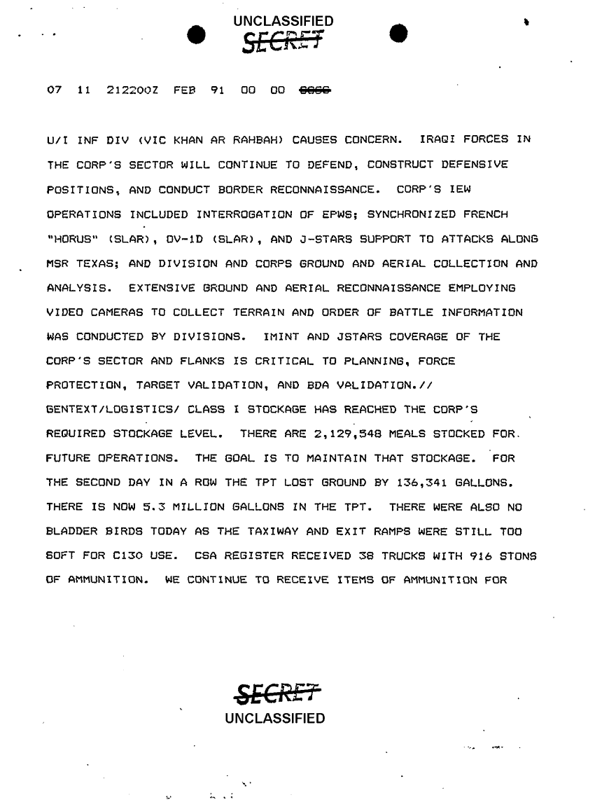Document 11 f:/Week-10/BX000020/DUTY LOG G3 REAR XVIII ABC MAIN CP SITREPS FEB 91/message dated 21 feb 91:11229616375155