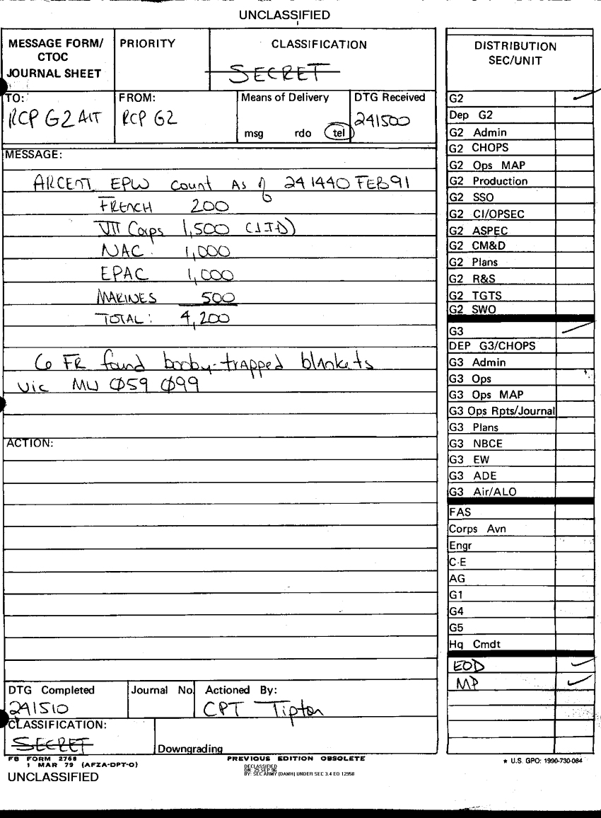 Document 21 f:/Week-09/BX000019/DUTY LOG G3 REAR 24 FEB 91/message form:1108961513533