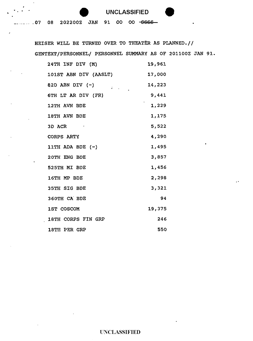 Document 8 f:/Week-10/BX000020/DUTY LOG G3 REAR XVIII ABC MAIN SITREPS CONT JAN 91/sitrep 21 jan 91:1108961513554