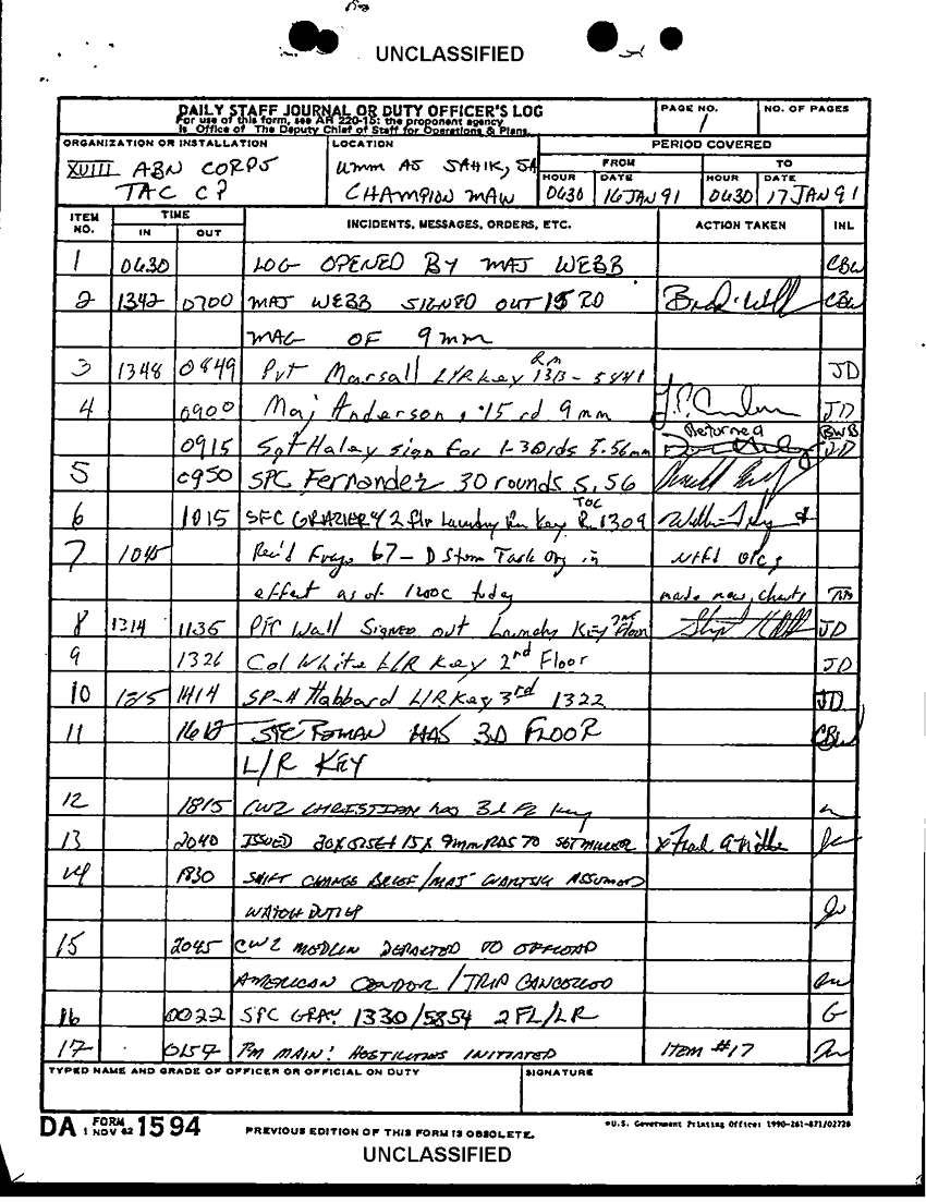 Document 21 f:/Week-12/BX000024/DUTY LOG G3 TAC CP 16 JAN 91/daily staff journal or duty officers log:11089615153157