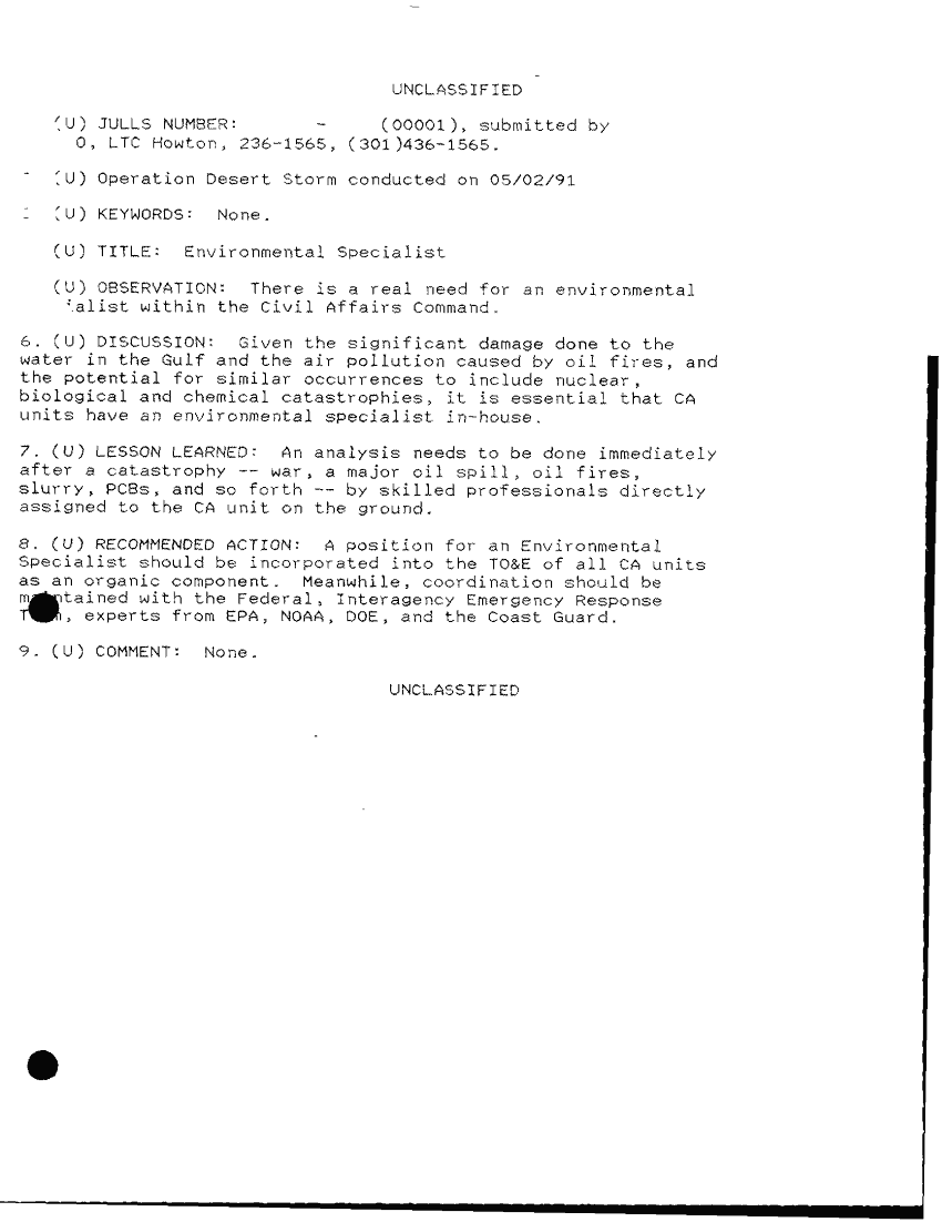 Subject = JULLS NO 00001 ENVIRONMENTAL SPECIALIST