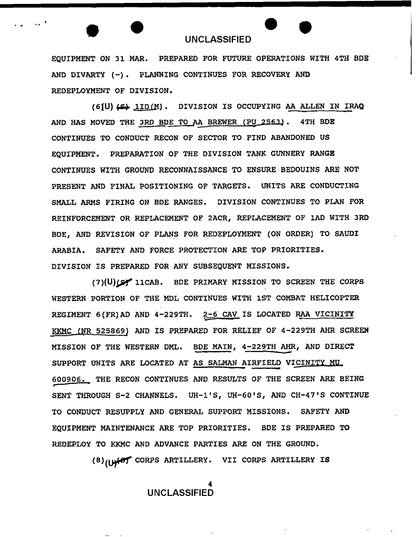 Document 12 f:/Week-24/BX000249/VII CORPS CMDRS SITREP 22 MAR THRU 6 MAY 91/commanders sitrep 70:12069615462111