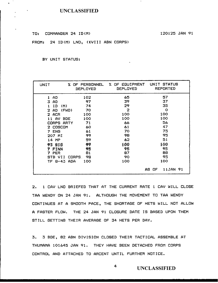 Folder Title = LNO REPORTS 24TH ID JAN 91