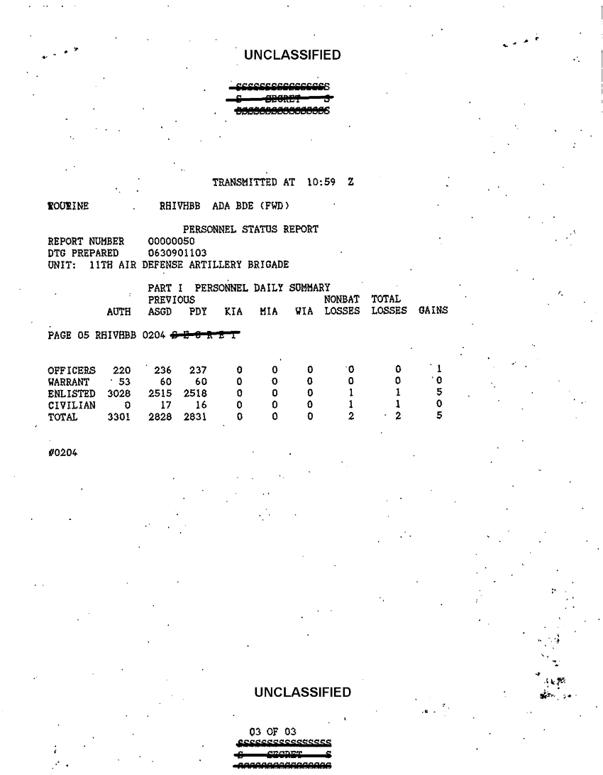 Subject = 11TH ADA BDE SITUATION REPORT 71