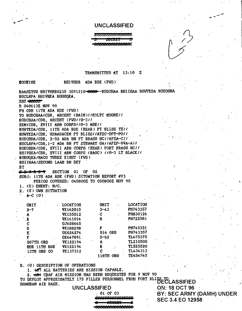 Folder Title = SITUATION REPORTS 11TH ADA BDE G3 NOV 90