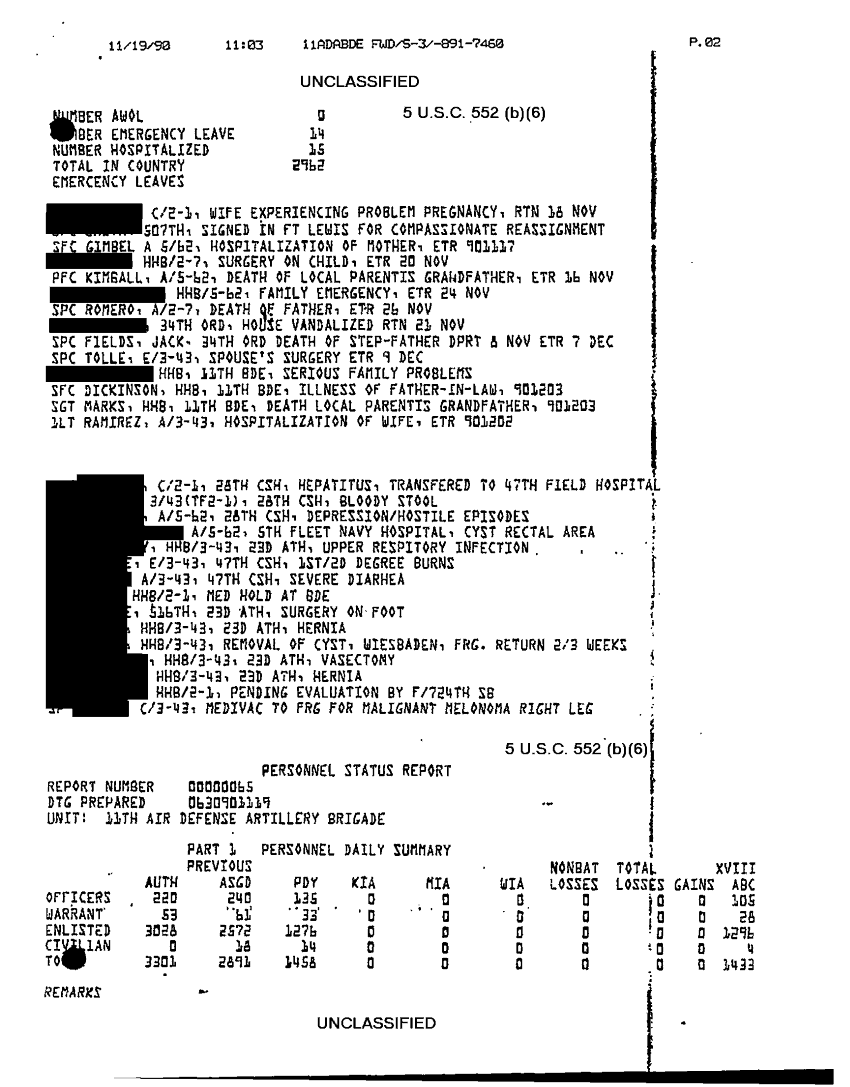 Folder Title = COMMAND REPORTS SITREPS 11TH ADA BDE 6 OCT 90-23 NOV 90