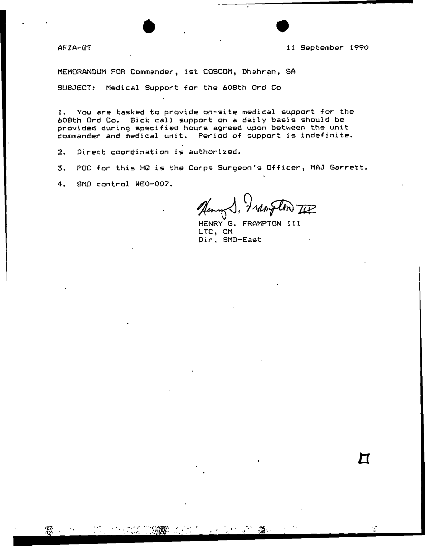 Document 1 f:/Week-08/BX000018/DUTY LOG CORPS TASKING OFFICER FILES - 1 SPT CMD - 2 FOLDERS/medical support for the 608th ord co:12179611160675