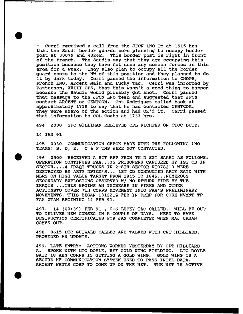 Document 57 f:/Week-30/BX000454/HISTORIANS BACKGROUND MATERIAL FILES - DAILY LOG SHEETS/daily staff journal and duty officers log:12179611150712
