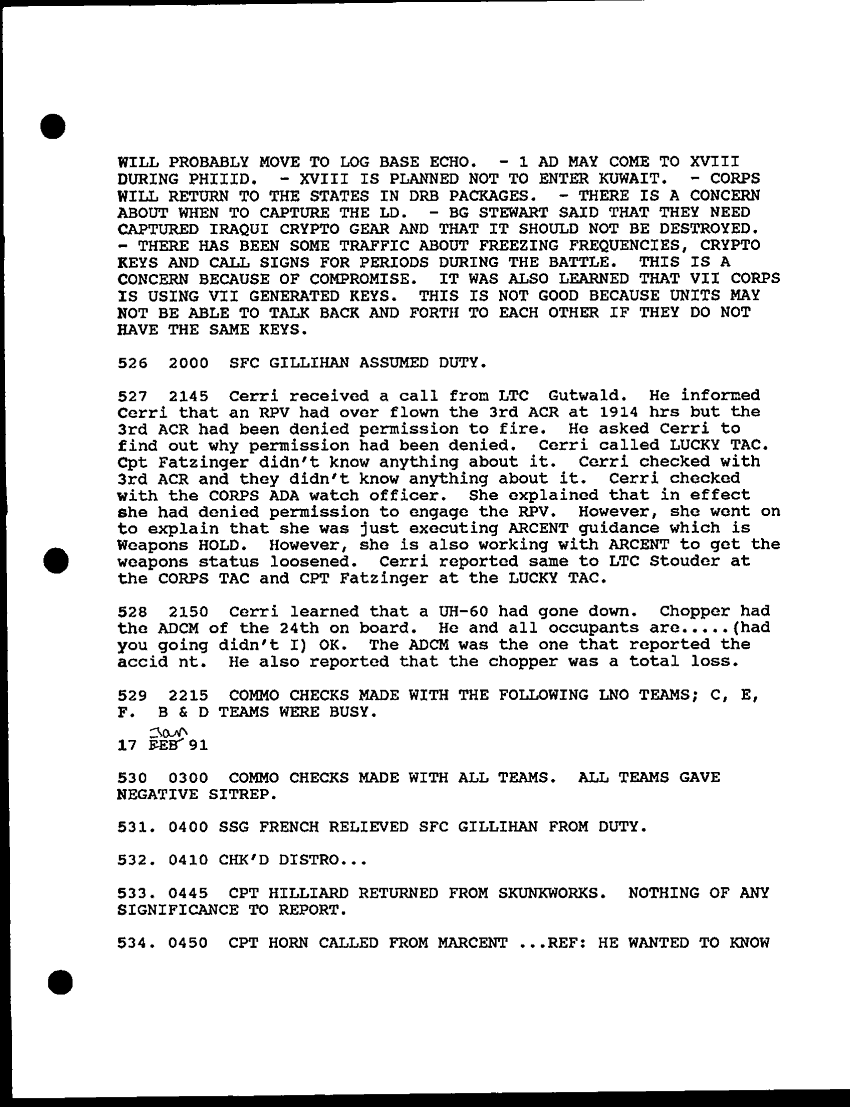 Document 57 f:/Week-30/BX000454/HISTORIANS BACKGROUND MATERIAL FILES - DAILY LOG SHEETS/daily staff journal and duty officers log:12179611150712