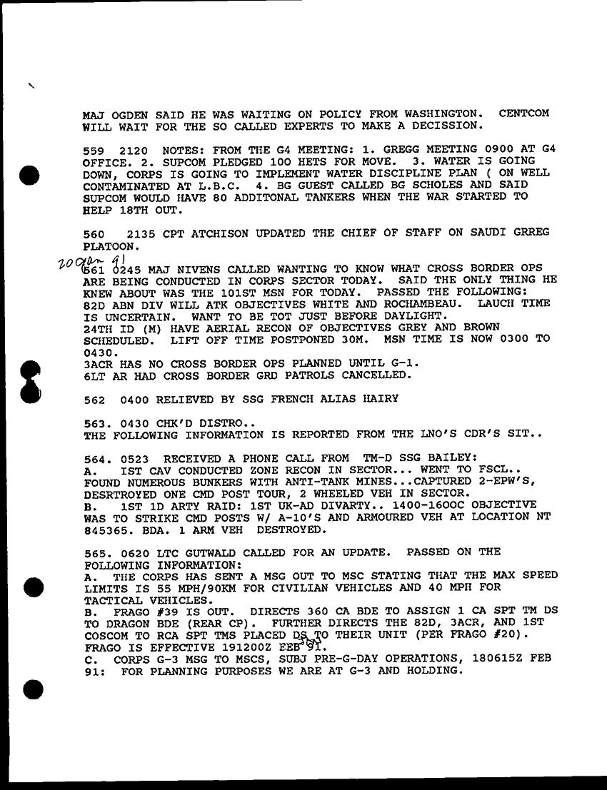Document 57 f:/Week-30/BX000454/HISTORIANS BACKGROUND MATERIAL FILES - DAILY LOG SHEETS/daily staff journal and duty officers log:12179611150712