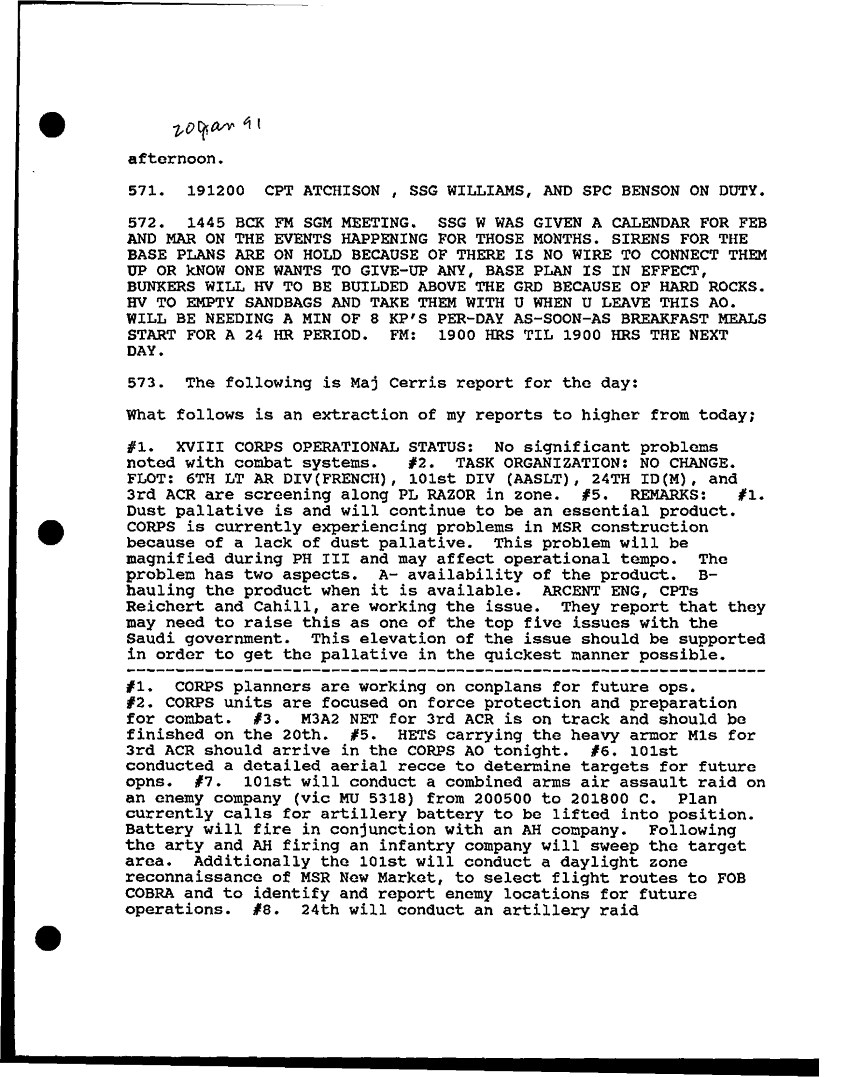 Document 57 f:/Week-30/BX000454/HISTORIANS BACKGROUND MATERIAL FILES - DAILY LOG SHEETS/daily staff journal and duty officers log:12179611150712