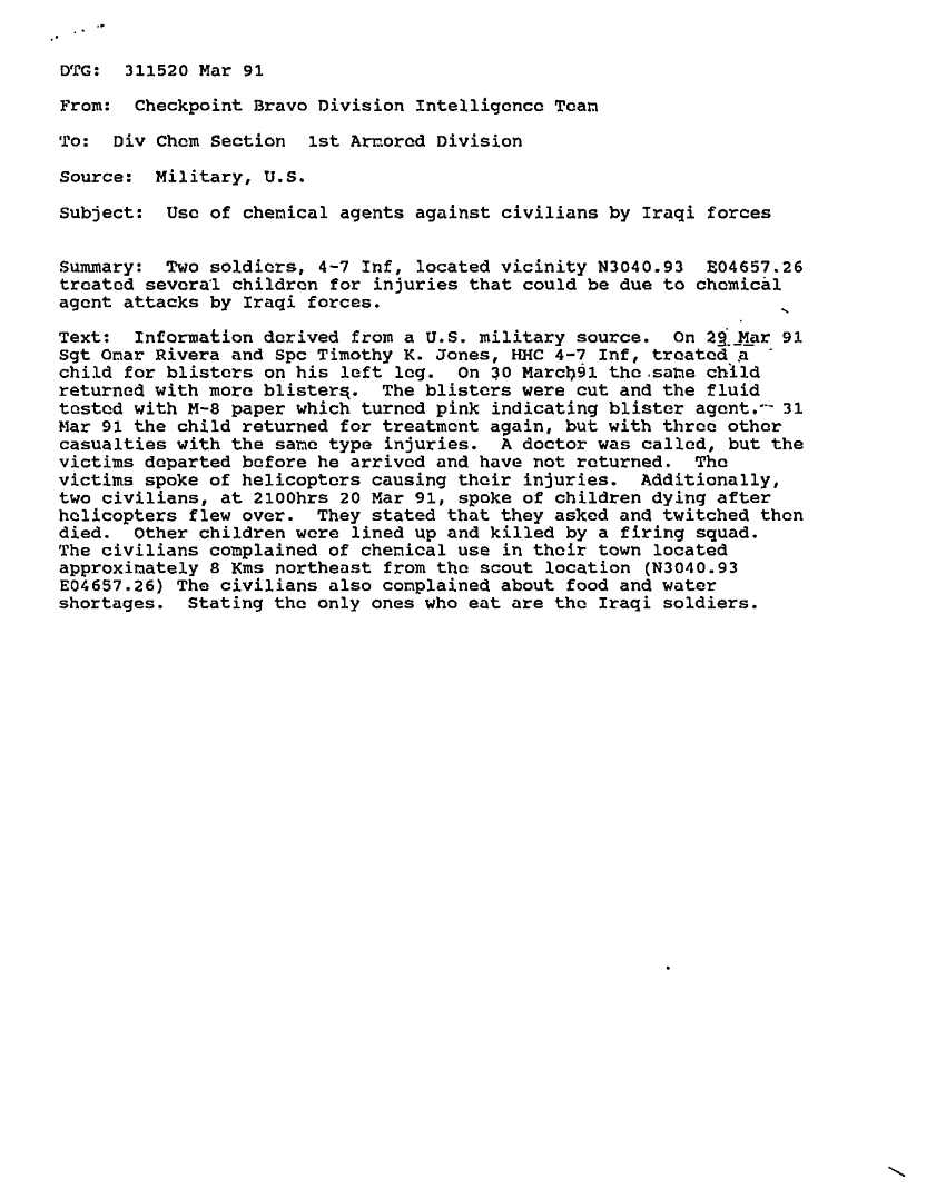 Subject = USE OF CHEMICAL AGENTS AGAINST CIVILIANS BY IRAQ