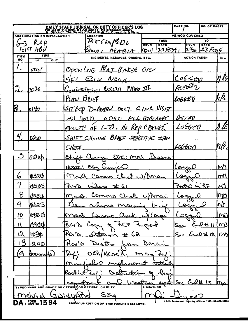 Document 3 f:/Week-22/BX001604/DUTY LOG G3 MAIN 15-27 SEP 90 G3 REAR 21-28 FEB 91/daily staff journal:12179611152026