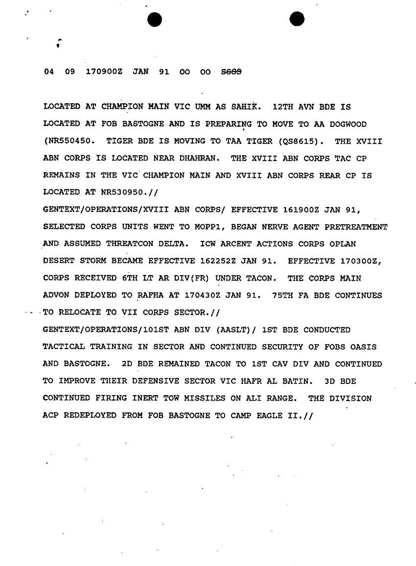 Document 9 f:/Week-10/BX000020/DUTY LOG G3 REAR XVIII ABC MAIN SITREPS CONT JAN 91/sitrep 17 jan 91:12179611154351