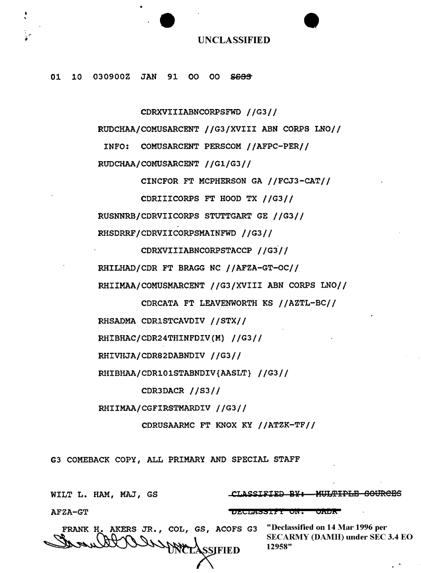 Document 10 f:/Week-10/BX000020/DUTY LOG G3 REAR XVIII ABC MAIN SITREPS JAN 91/message dated 3 jan 91:12179611154452