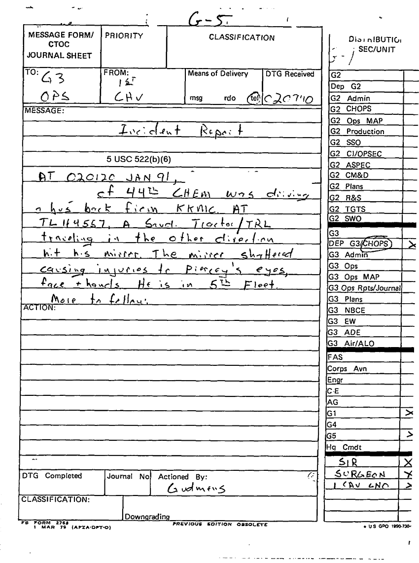 Document 12 f:/Week-10/BX000023/DUTY LOG G5 2 JAN 91/daily staff journal od duty officers log:12179611155159