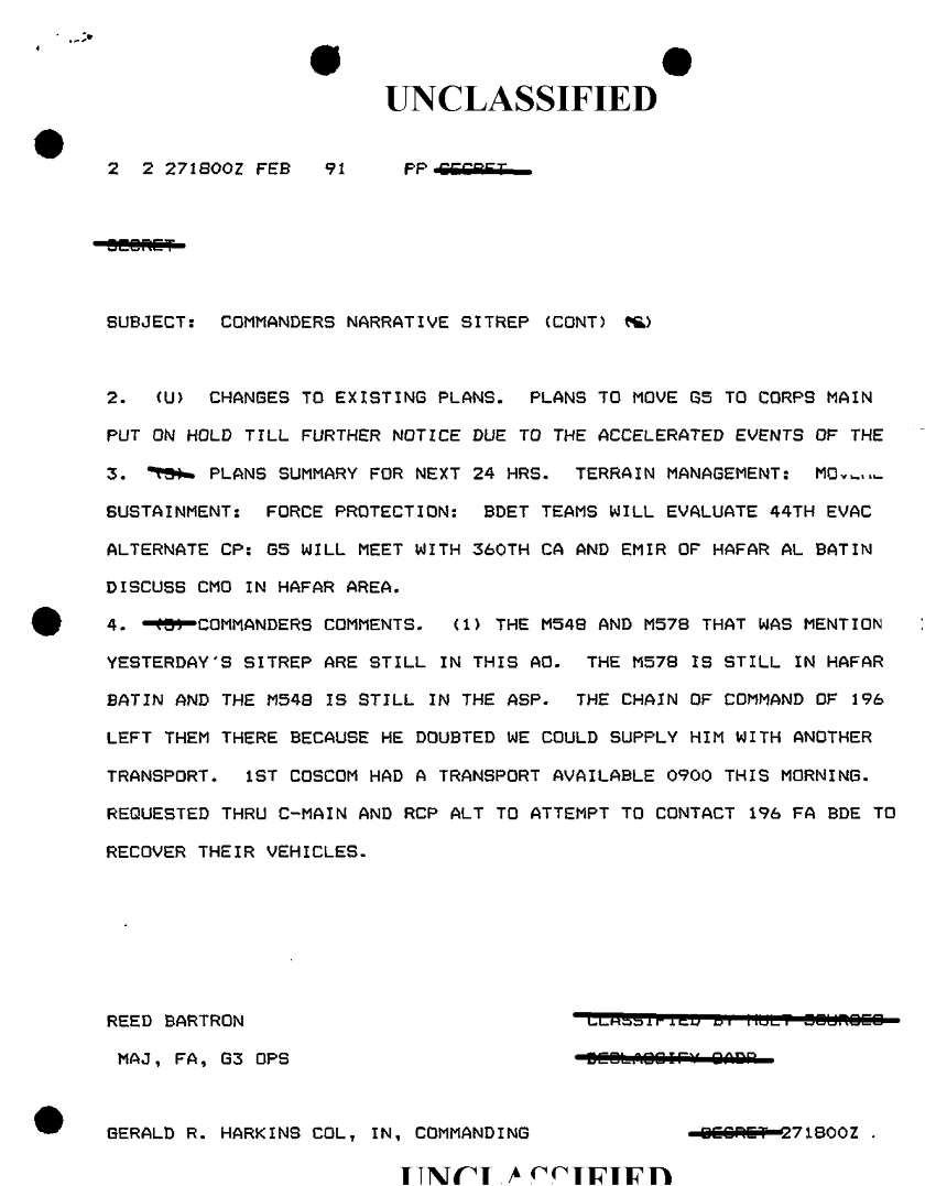 Document 2 f:/Week-10/BX000020/DUTY LOG G3 REAR OUTGOING MSG 20 FEB - 14 MAR 91/commanders narrative sitrep:12179611155664