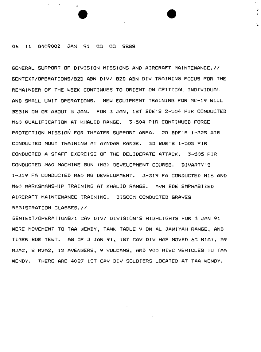 Document 11 f:/Week-10/BX000020/DUTY LOG G3 REAR XVIII ABC MAIN SITREPS JAN 91/message dated 4 jan 91:12179611155967
