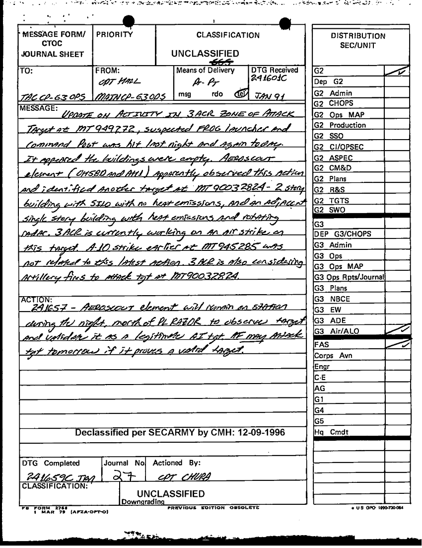 Document 25 f:/Week-12/BX000024/DUTY LOG G3 TAC CP 24 JAN 91/daily staff journal or duty officers log:12179611153137