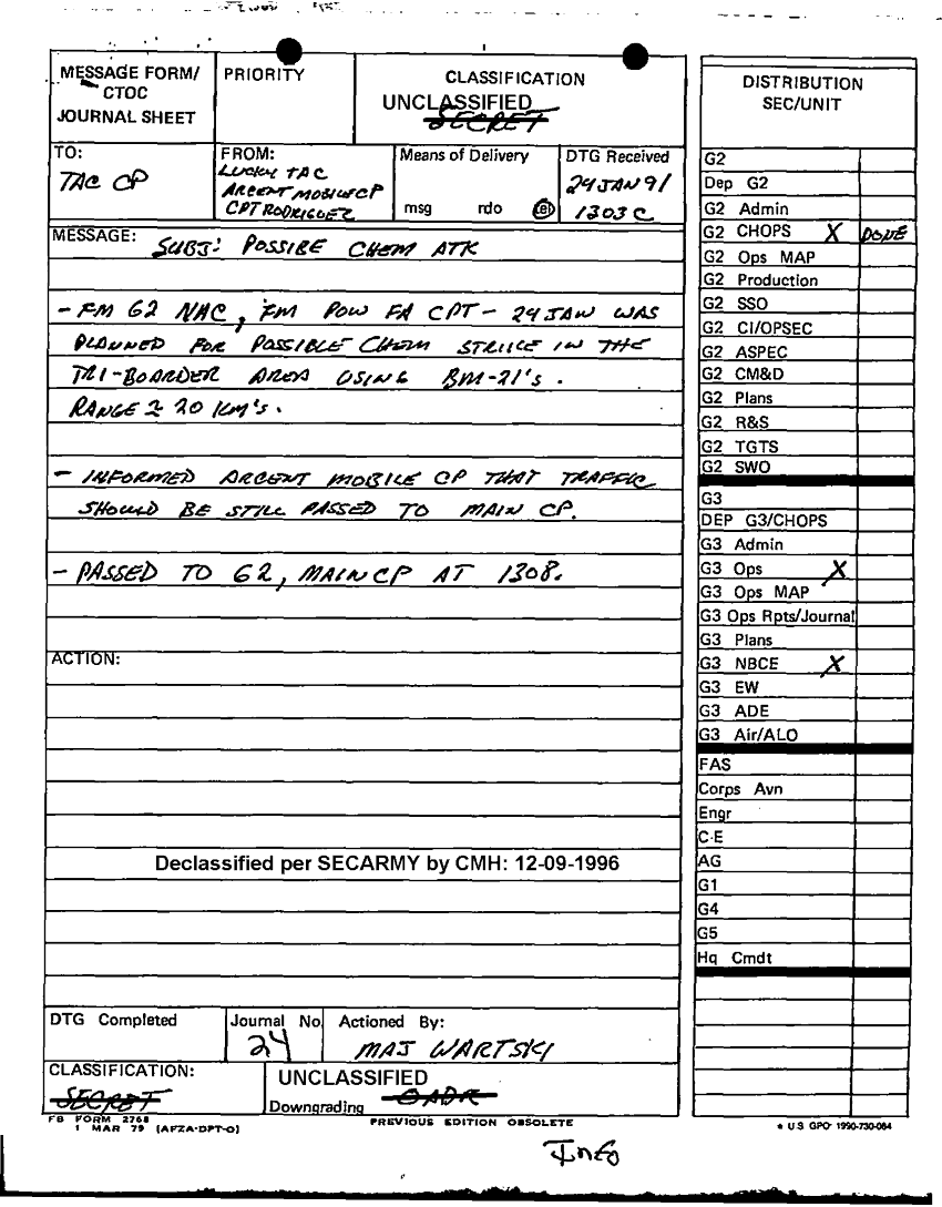 Document 25 f:/Week-12/BX000024/DUTY LOG G3 TAC CP 24 JAN 91/daily staff journal or duty officers log:12179611153137