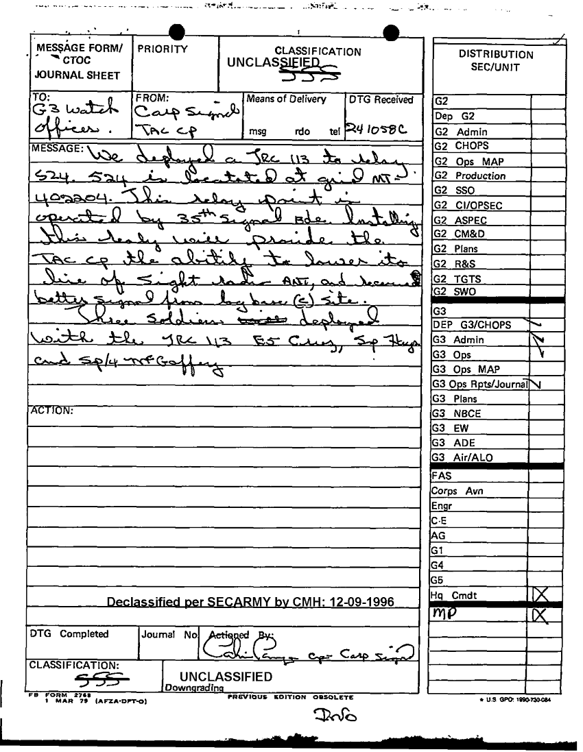 Document 25 f:/Week-12/BX000024/DUTY LOG G3 TAC CP 24 JAN 91/daily staff journal or duty officers log:12179611153137