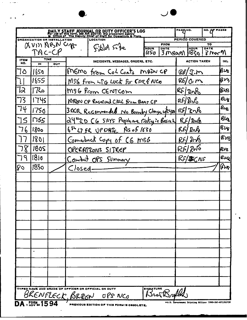 Document 61 f:/Week-12/BX000024/DUTY LOG G3 TAC CP 2 MAR 91/dailyl staff journal or duty officers log:12179611153138