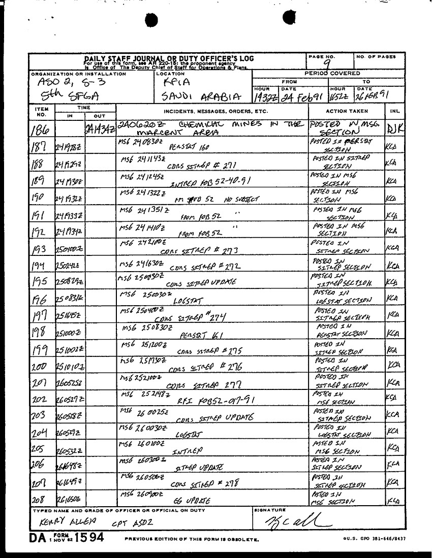 Document 10 f:/Week-46/BX004003/1-28 FEB 91 STAFF JOURNAL ASO 2 5TH SFGA KFIA/daily staff journal or duty officers log:12179611162192