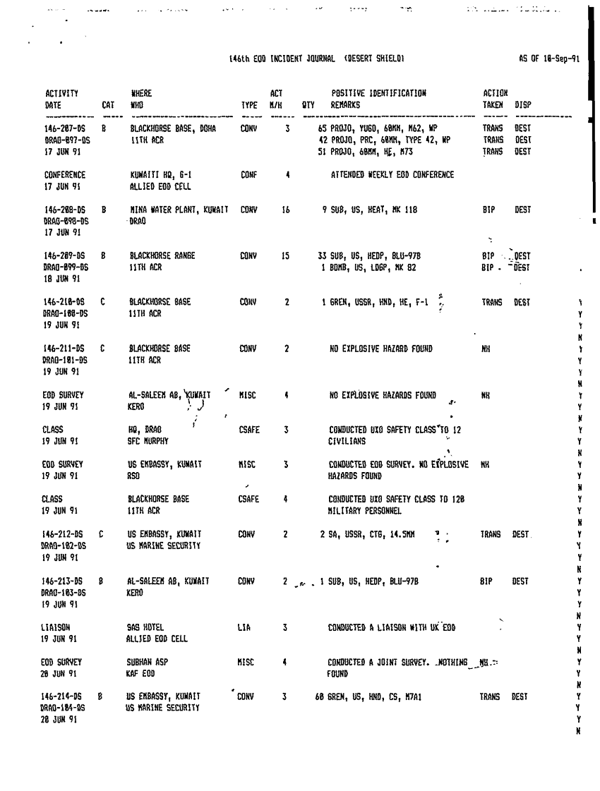 Document 12 f:/Week-46/BX005555/512TH EODCT SUBORD UNIT JOURNALS EOD INCIDENTS/eod activity and status report ods 1 30 jun 91:121796111633105