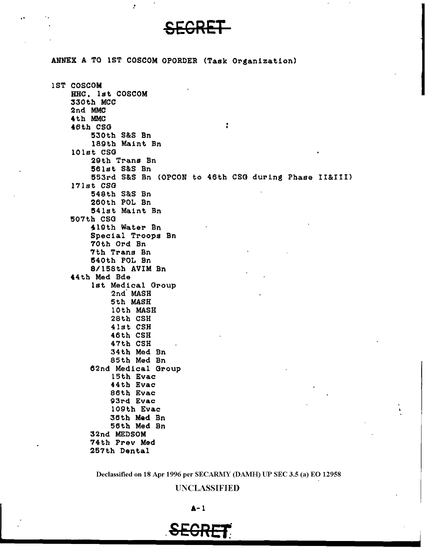 Subject = 1ST COSCOM OPERATION ORDER DESERT STORM