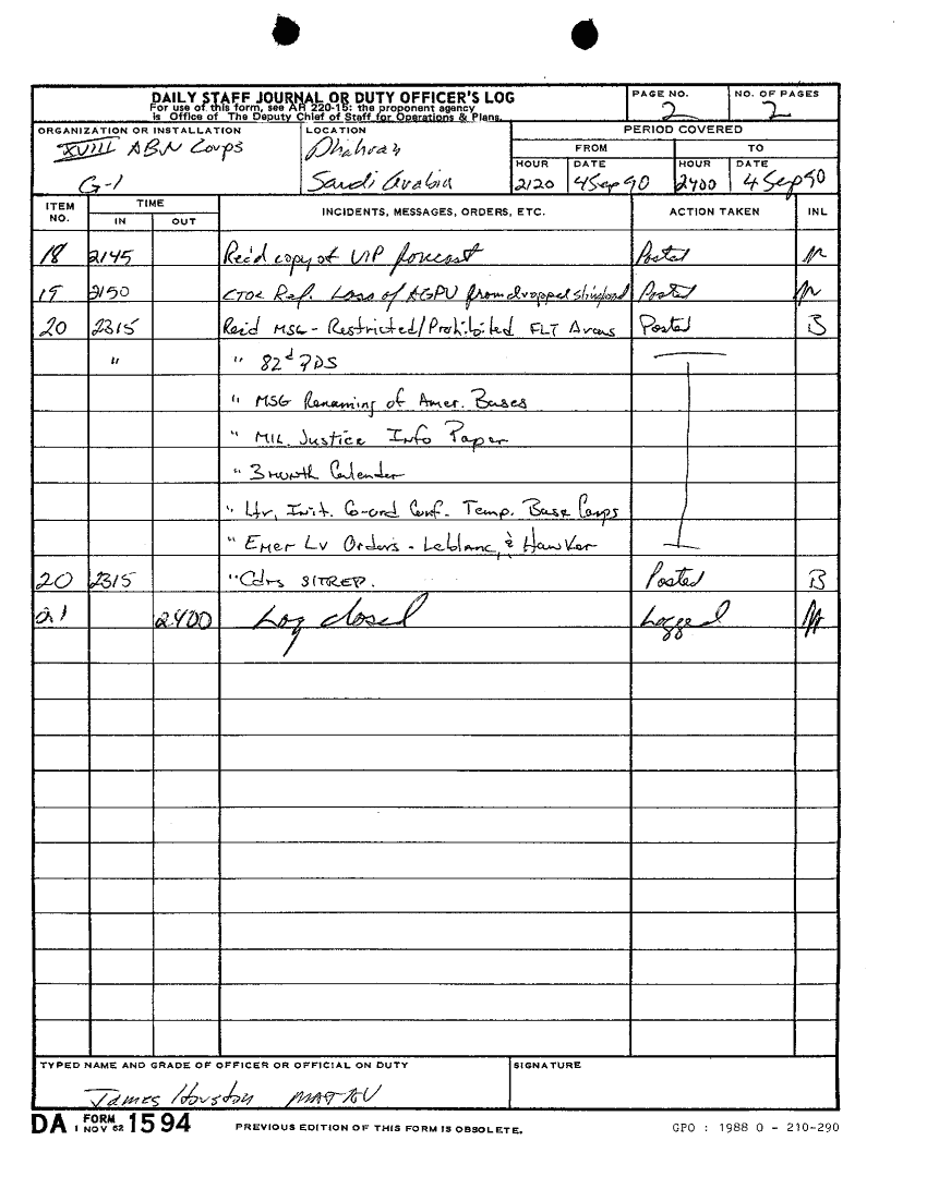 Document 110 f:/Week-15/BX000043/DUTY LOG G1 1-15 SEP 90/daily staff journal or duty officers log:12269616083010