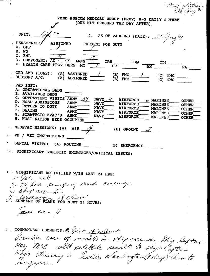 Document 7 f:/Week-34/BX005151/DAILY SITREPS JUL 91/22nd supcom medical group s3 daily sitrep:12269616083418