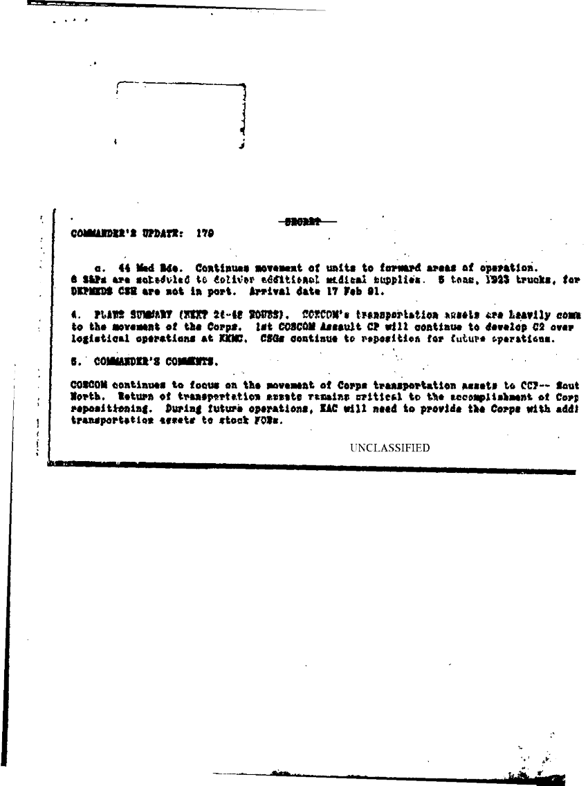 Document 3 f:/Week-08/BX000015/DUTY LOG 1 COSCOM SITREPS G3 JAN 91/significant activities sequence 179:12269616083621