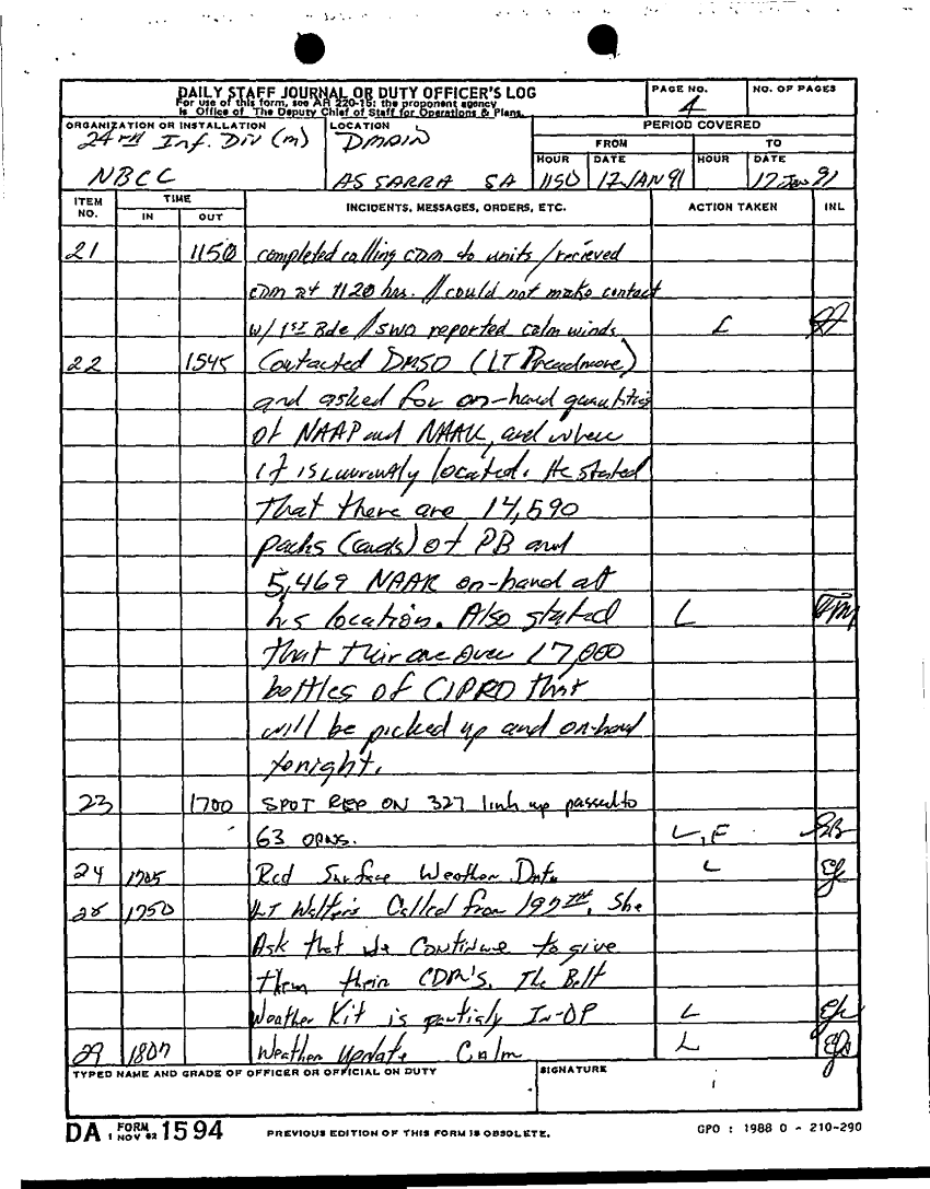 Document 85 f:/Week-22/BX001431/DAILY STAFF JOURNALS 24TH INF JAN MAR 91/daily staff journal:12269616085661