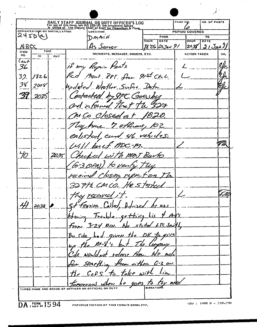 Folder Title = DAILY STAFF JOURNALS 24TH INF JAN MAR 91