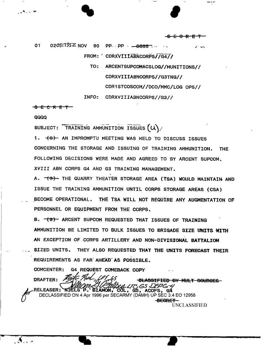 Document 1 f:/Week-12/BX000031/DUTY LOG REAR CP G3 6 NOV 90/training ammunition issues:1226961608262