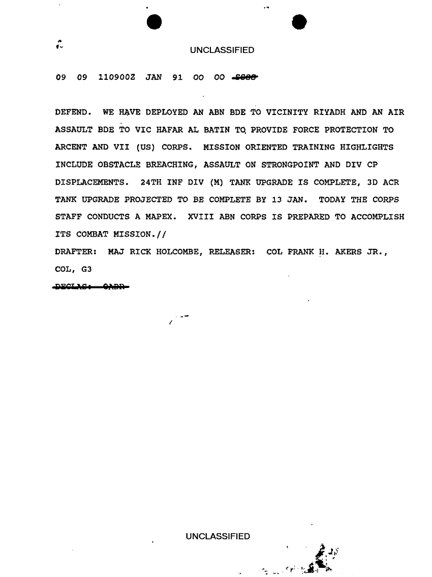 Document 9 f:/Week-10/BX000020/DUTY LOG G3 REAR XVIII ABC MAIN SITREPS JAN 91/message dated 11 jan 91:12269616085559