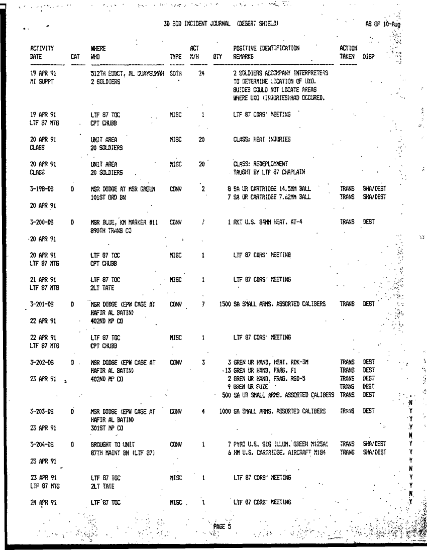 Document 9 f:/Week-46/BX005555/512TH EODCC JOURNAL ACTIVITY REPORTS/eod activity and status rpt ods 31 april 91:12269616085662